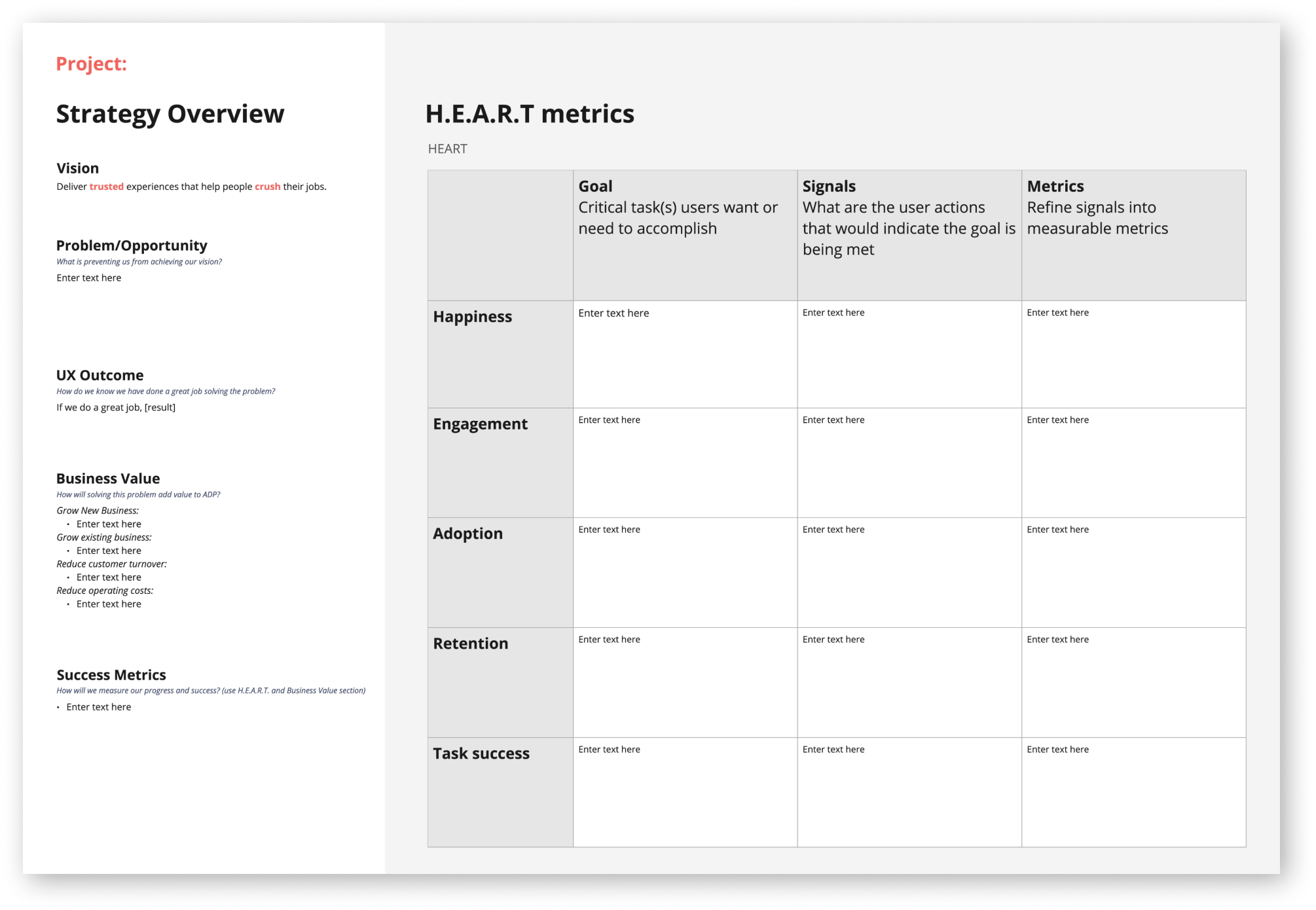 Strategic guidelines, exercises, and methodologies I used to guide UX work.